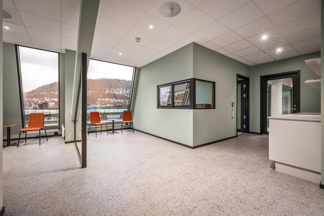 For byggherre har vi som totalentreprenør i Møllendalsveien 1 bygget om eiendommens 6. etasje. Arealet, som tidligere var et parkeringsareal, ble omgjort til et topp moderne kontorareal på 1000 m² – ferdigstilt i januar 2026.